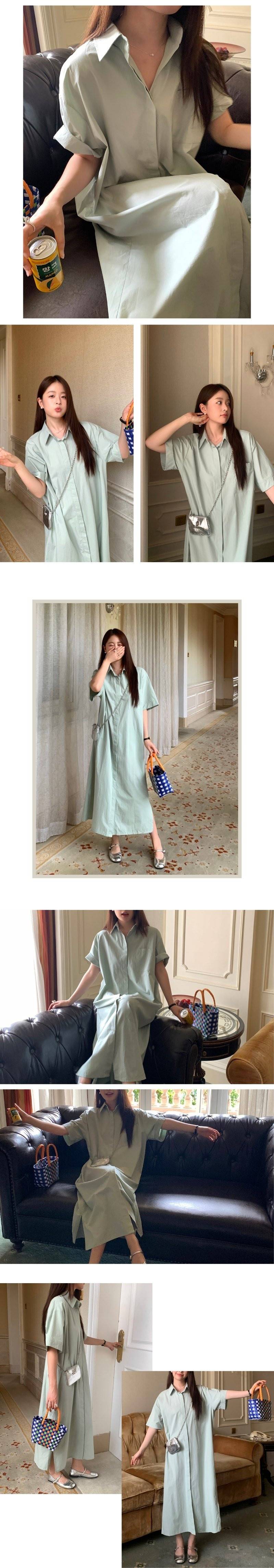 A34-不怕爆釦尷尬的隱藏釦襯衫洋裝*薄荷綠